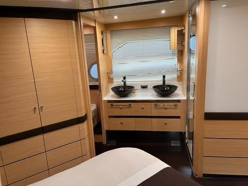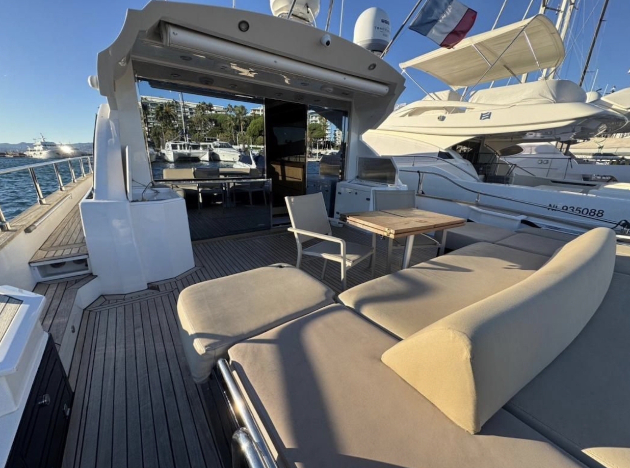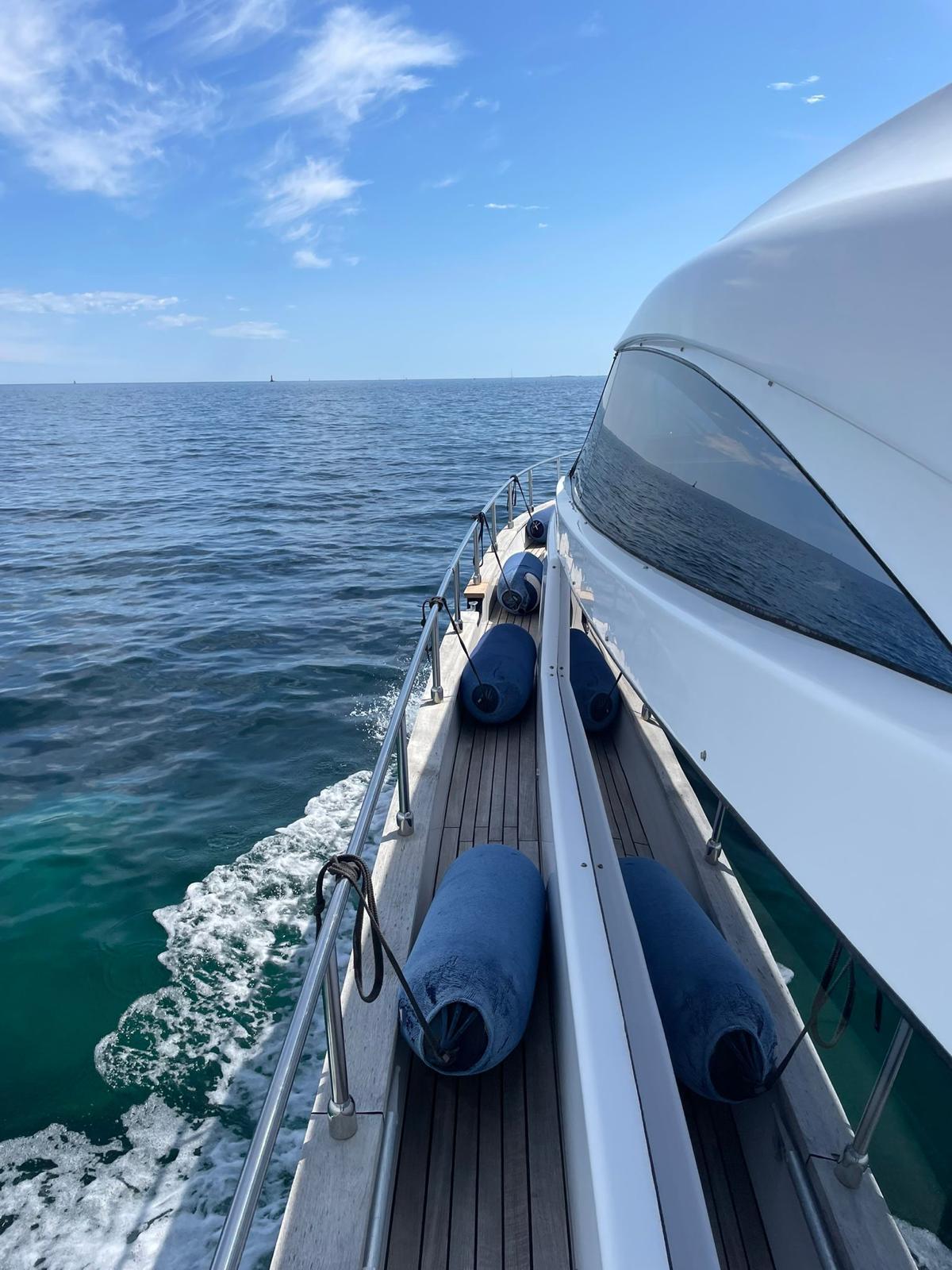 Vous apprécierez son équipement complet, son garage à annexe pratique, son annexe incluse, ainsi que son Yacht Controller, gage de manœuvres faciles et précises. Grâce à ses pods performants, la navigation est fluide.